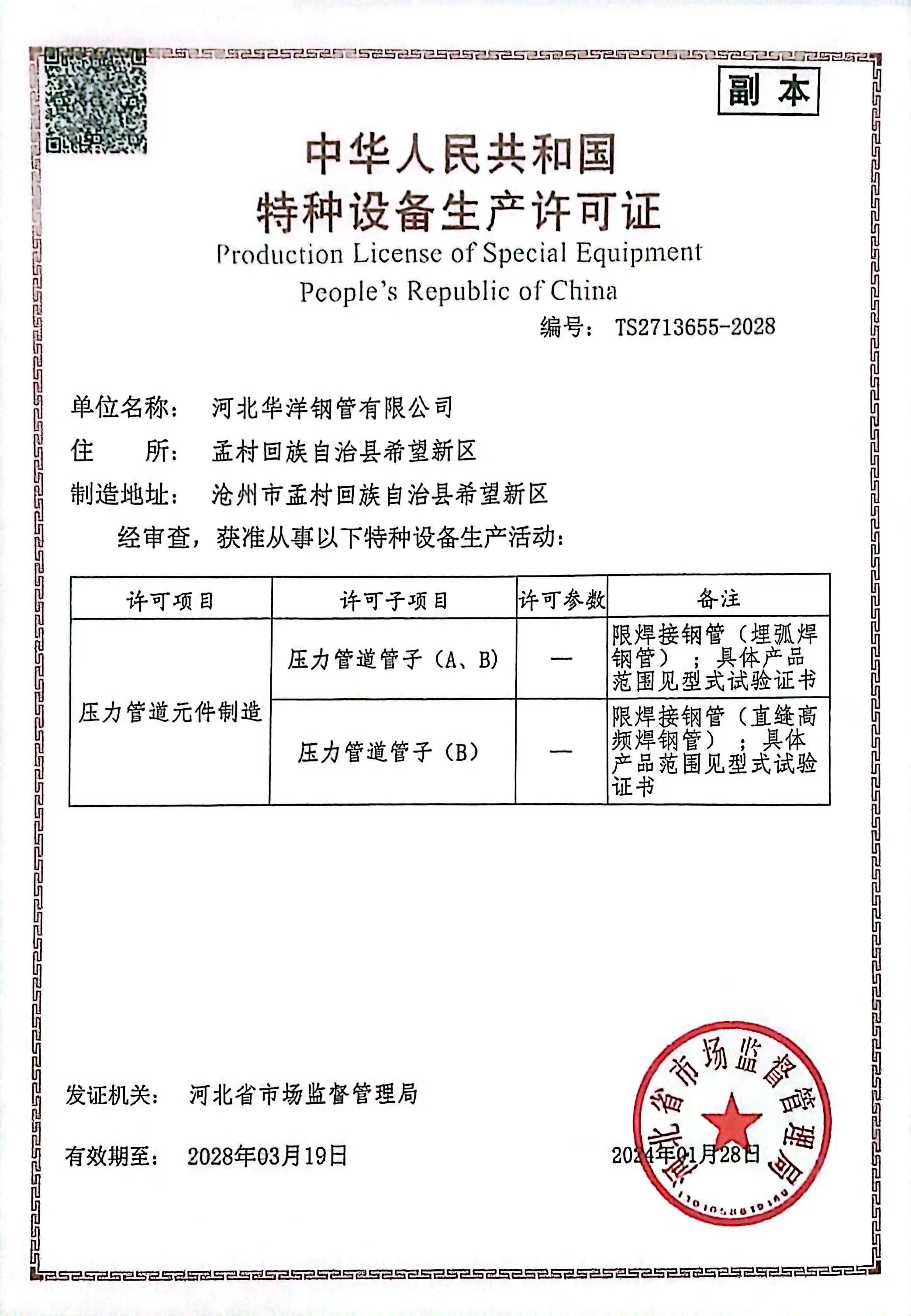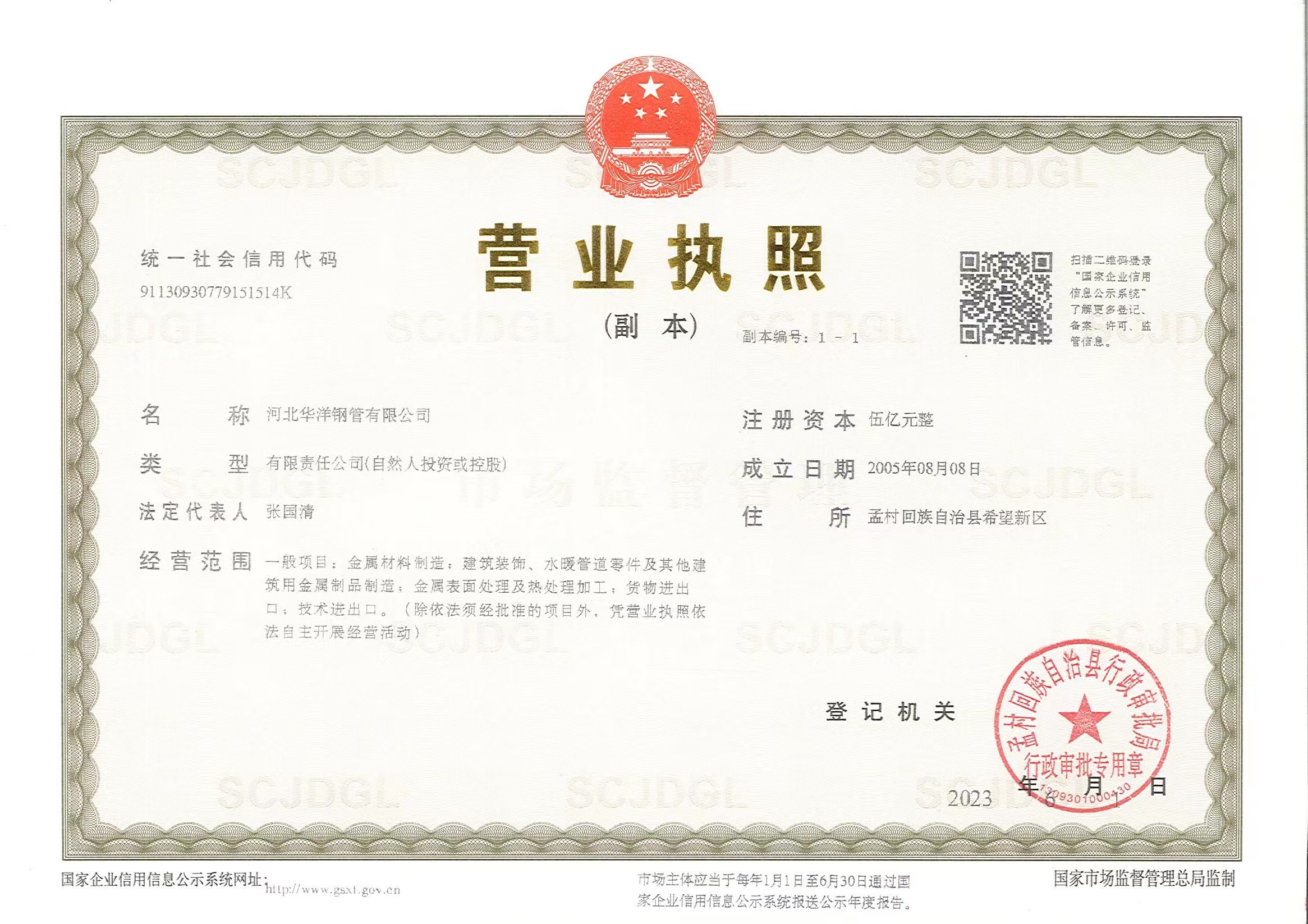 公司產(chǎn)品主要用于石油、天然氣、水、蒸汽、煤氣等高、中、低壓流體輸送管道及打樁、橋梁、建筑等結(jié)構(gòu)用鋼管,并承擔(dān)了國(guó)內(nèi)外標(biāo)志性工程建設(shè),華洋作為一個(gè)綜合型生產(chǎn)企業(yè),下設(shè)河北銘高貿(mào)易有限公司,以及在天津石家莊、山東、四川、廣州等地設(shè)立有3家分公司和5個(gè)辦事處。產(chǎn)品銷(xiāo)往各個(gè)城市井出口東南亞、中東、歐美等八十多個(gè)地區(qū),在國(guó)內(nèi)外享有很高的聲譽(yù)。