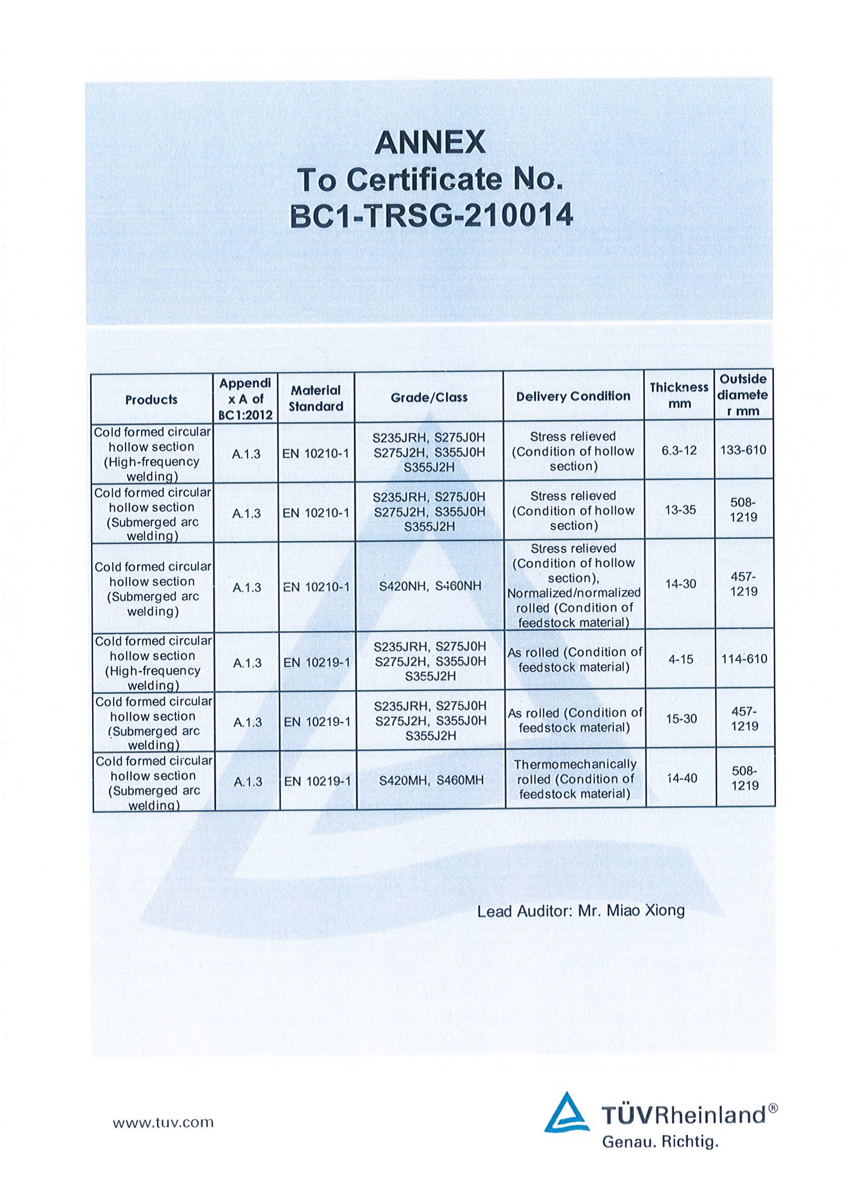 公司現(xiàn)有17條新型的自動(dòng)化鋼管生產(chǎn)線(xiàn),包括Φ73-660.4高頻直縫焊鋼管生產(chǎn)線(xiàn)14條、Φ406.4-Φ1422.4直縫雙面埋弧焊鋼管生產(chǎn)線(xiàn)3條,并配備有一條防腐生產(chǎn)線(xiàn),可進(jìn)行3PE、2PE、FBE、2PP、3PP防腐處理,同時(shí)還可提供鋼管深加工服務(wù)。公司擁有先進(jìn)的理化實(shí)驗(yàn)室,可承擔(dān)鋼管的各項(xiàng)物理及化學(xué)檢測(cè)與試驗(yàn)。公司先后取得了ISO9001質(zhì)量管理體系認(rèn)證、ISO14001環(huán)境管理體系認(rèn)證、ISO45001職業(yè)健康安全管理體系認(rèn)證、特種設(shè)備制造許可證、API5L和API2B認(rèn)證證書(shū)、歐盟CE認(rèn)證、俄羅斯GOST認(rèn)證、中海油入網(wǎng)證、安全生產(chǎn)標(biāo)準(zhǔn)化二級(jí)企業(yè)等標(biāo)準(zhǔn)質(zhì)量體系認(rèn)證。