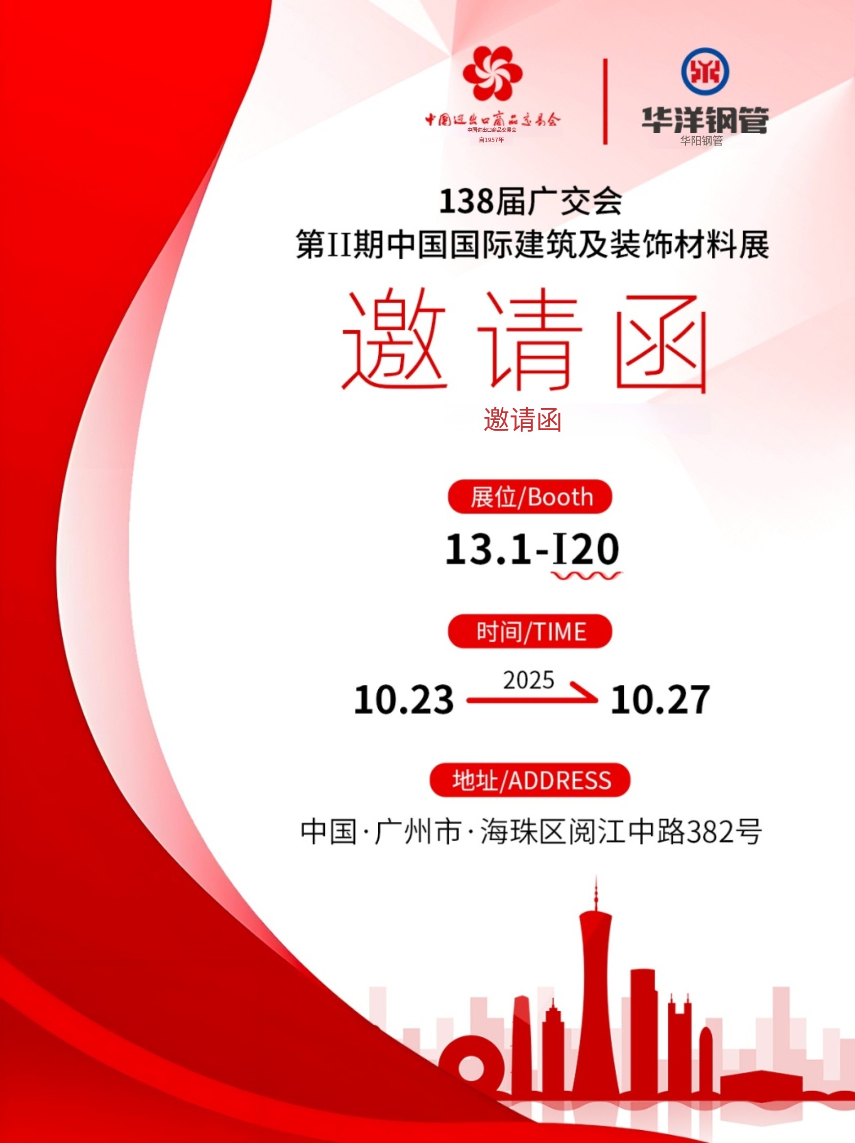廣交會一期第一天剛剛結束,但精彩剛剛開始!華洋鋼管將持續(xù)參展至10月19日,我們期待在第二期與您再次相聚,共創(chuàng)更多精彩的交流與合作機會。